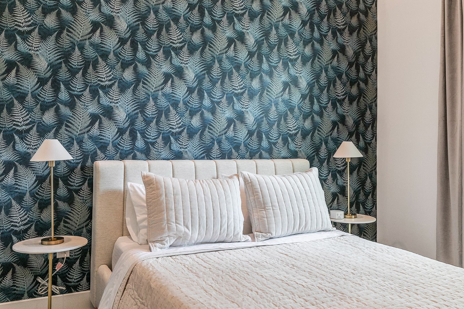 Room-darkening curtains and white noise machine for restful sleep